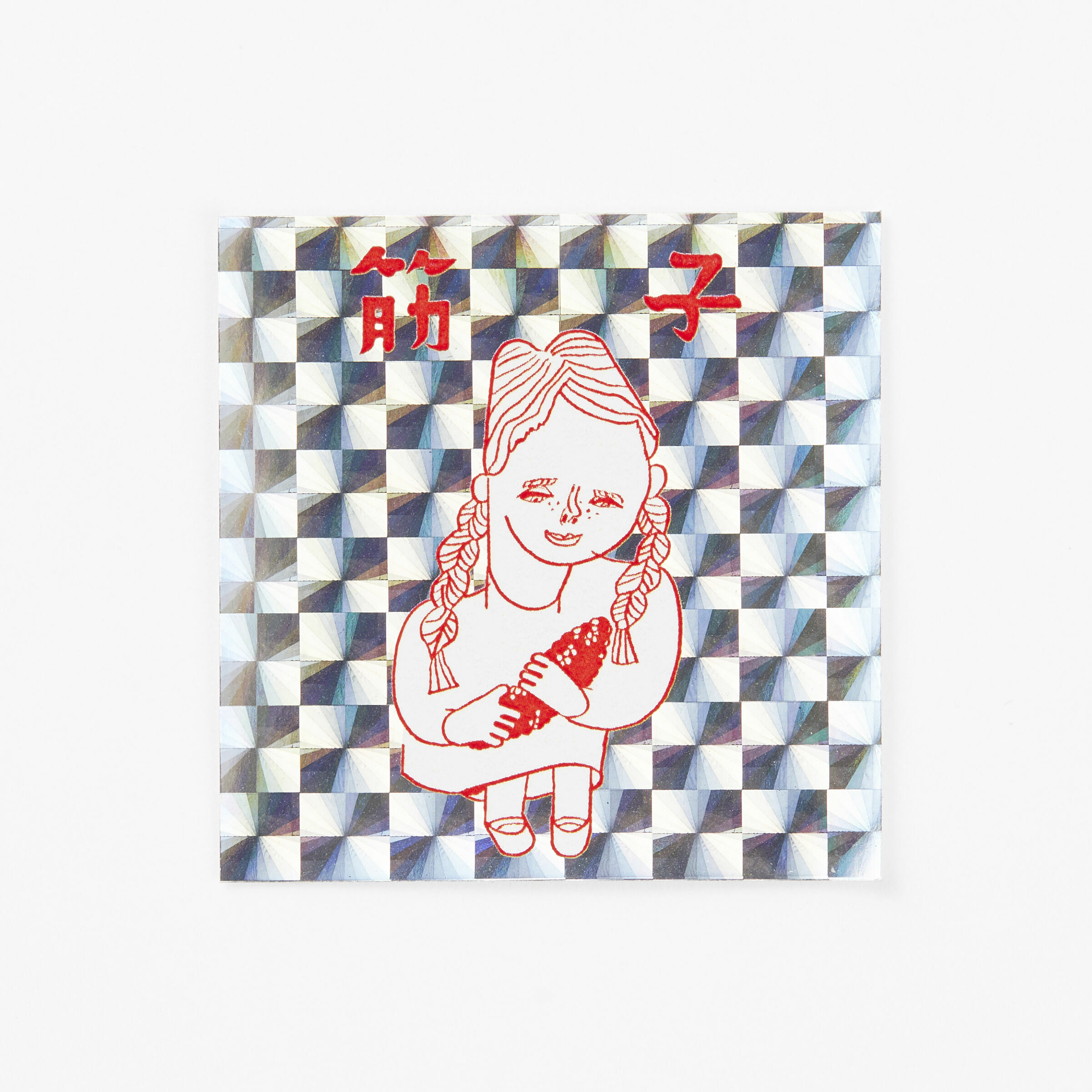 貼紙圖案是以店內人氣程度不輸招牌炸花枝腳的「筋子」(帶膜鮭魚卵)為靈感而繪製。據說店內的筋子皆是店主嚴選來自北歐的鮭魚卵,最適合搭配飯糰一起食用。在還無法前往山形一飽口福之前,先買張筋子貼紙用眼睛品嘗。