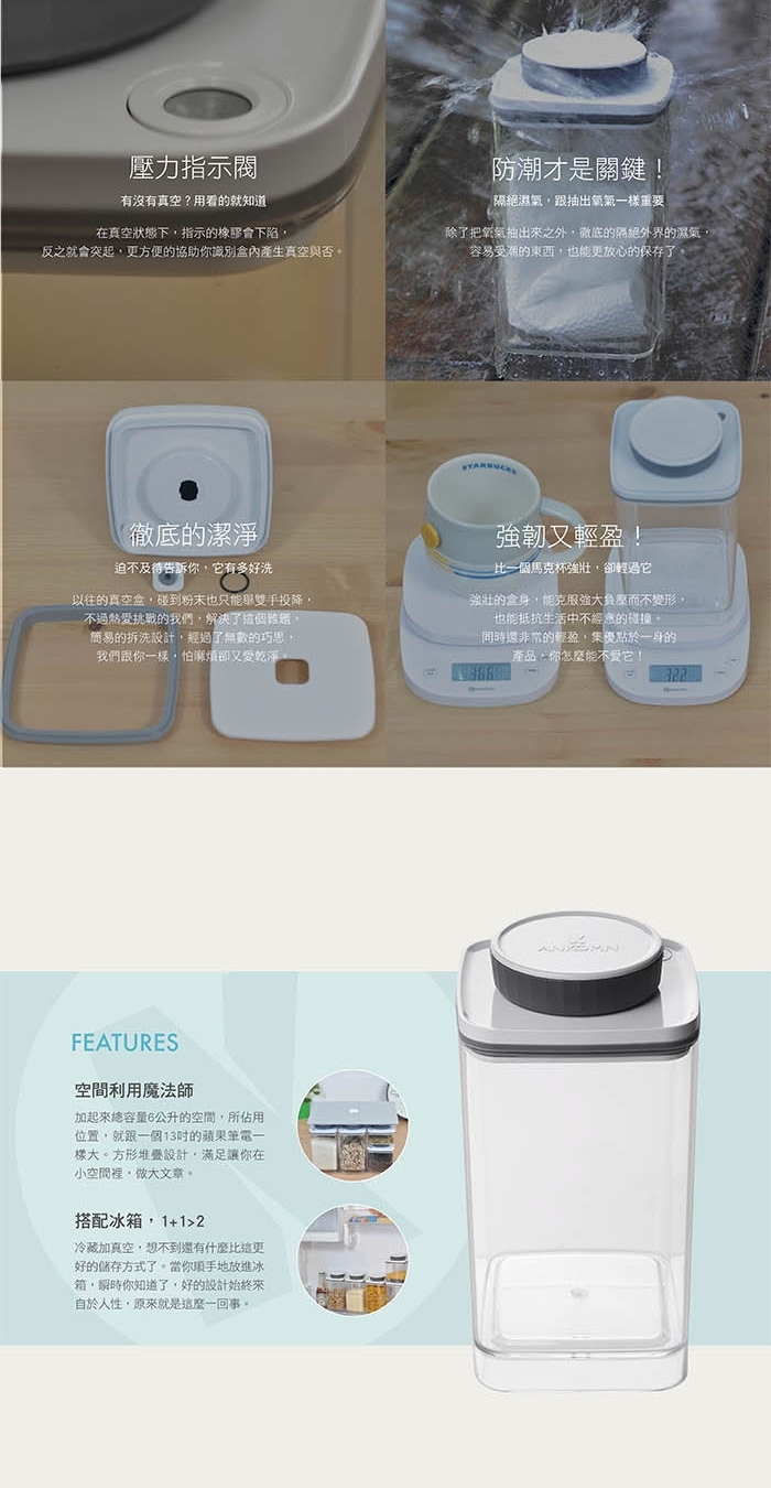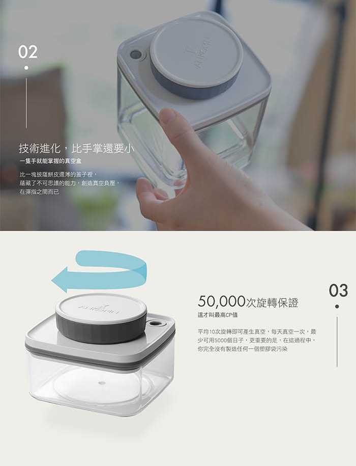 不同於一般保鮮氣密罐,可確實真空、增強防潮防氧化,延長8倍食材壽命